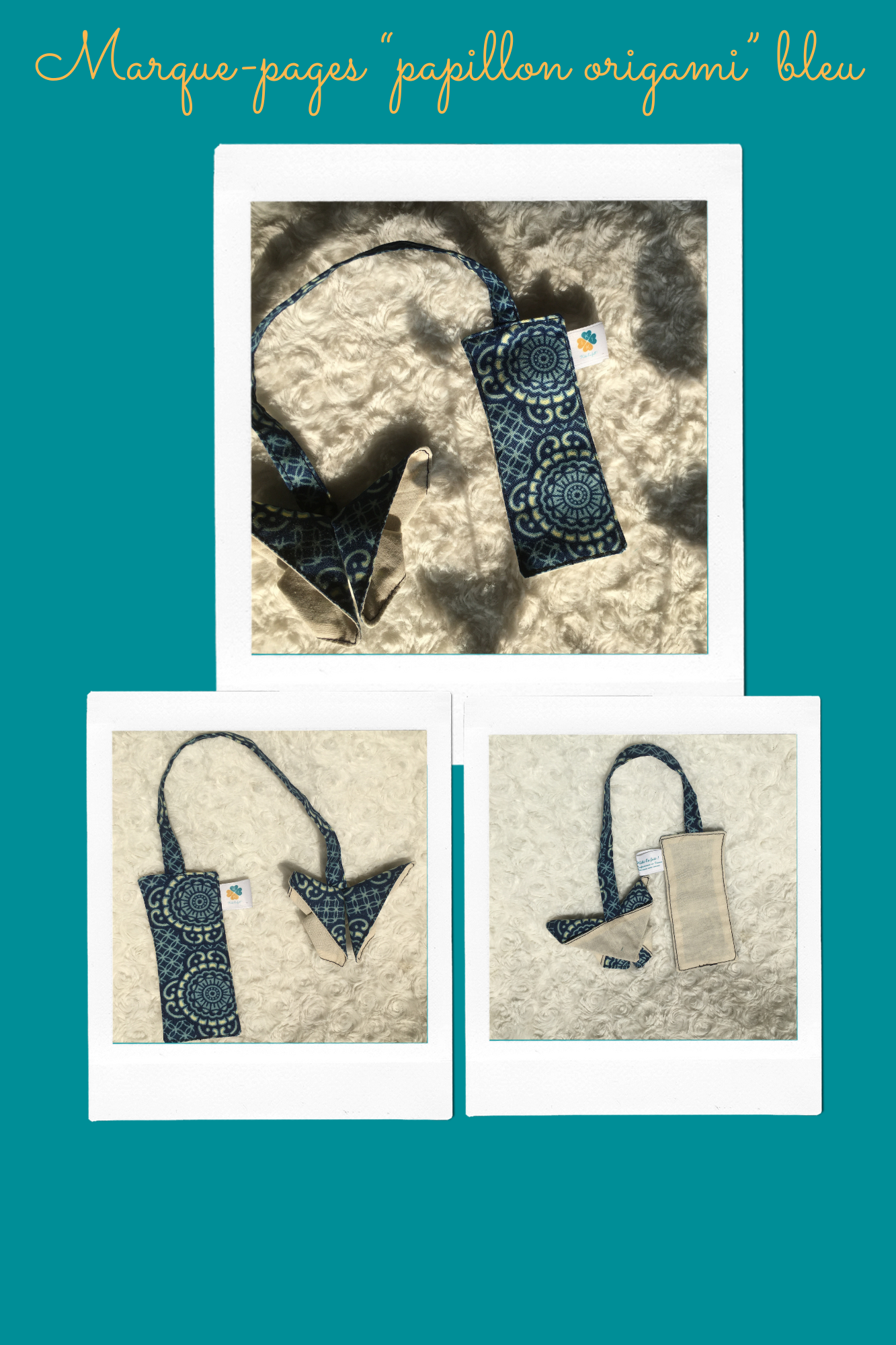 Marque-pages en wax bleu et beige. Envers coton beige.